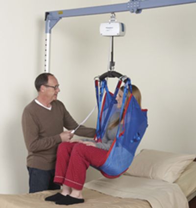 Simply getting your loved one from their bed to the bathroom, living room, or garage can be physically taxing or impossible. Transfer systems with slings and harnesses can facilitate this process. These systems support the weight of the disabled person, and may use a system of ceiling-mounted rails to move that individual around the home.